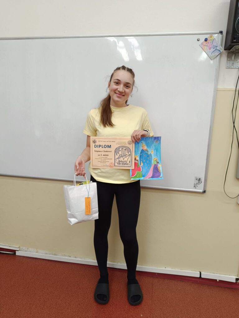 Štěpánka Chabrová z 8. A získala ve výtvarné soutěži Nakresli tři krále 3. místo mezi 230 soutěžícími v rámci celé České republiky.