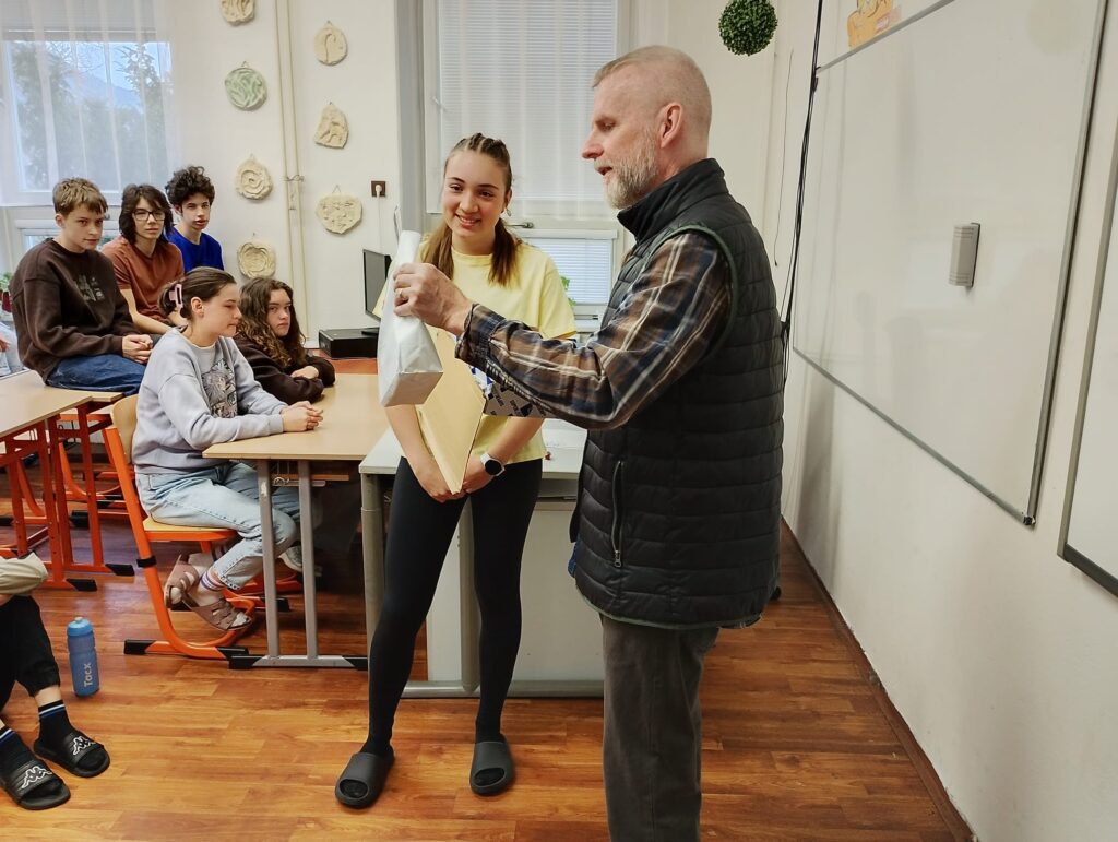 Tým odborné poroty ze společenství FATYM z Vranova nad Dyjí Štěpánce kromě diplomu věnoval i drobné upomínkové předměty.